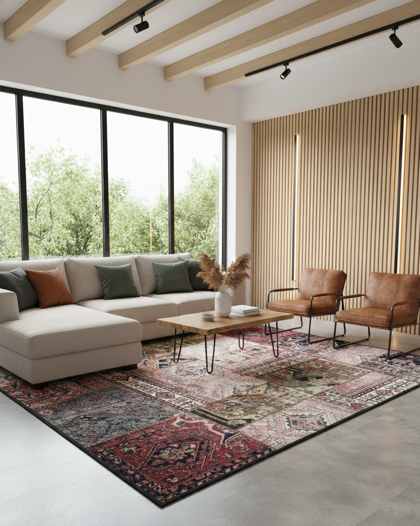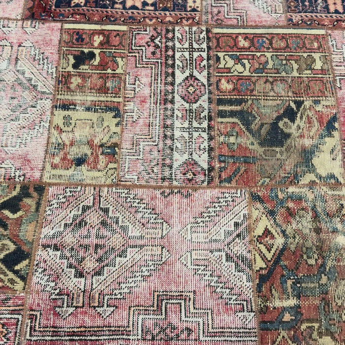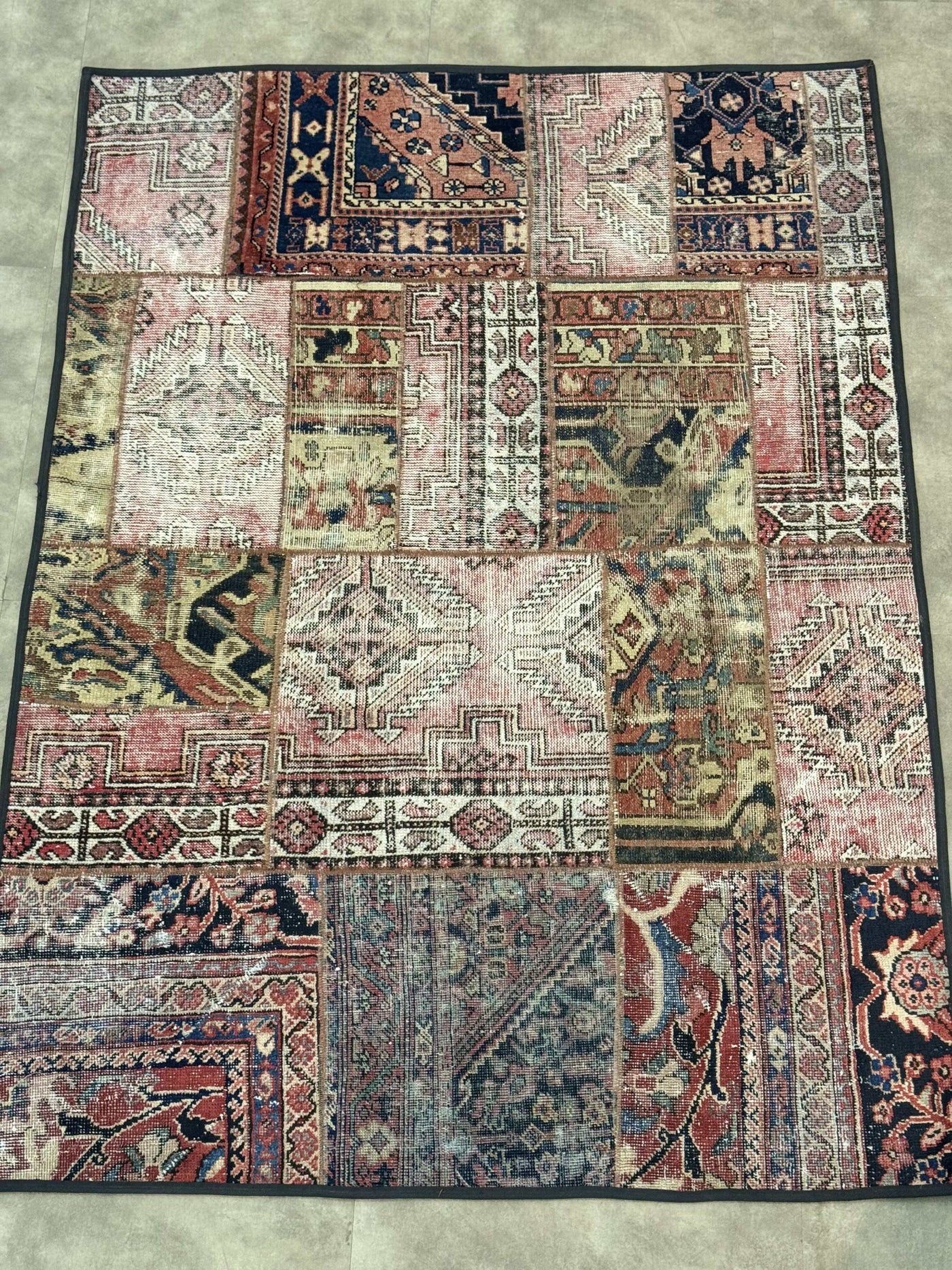 O Tapete Persa Iraniano Artesanal Retangular Patchwork Rose Vintage 1,88 x 1,39 é uma verdadeira peça de destaque, unindo tradição, estilo e personalidade em um visual marcante e atemporal. Confeccionado à mão na Índia, ele reúne fragmentos de padrões orientais com acabamento envelhecido, criando uma composição artística única e cheia de autenticidade.